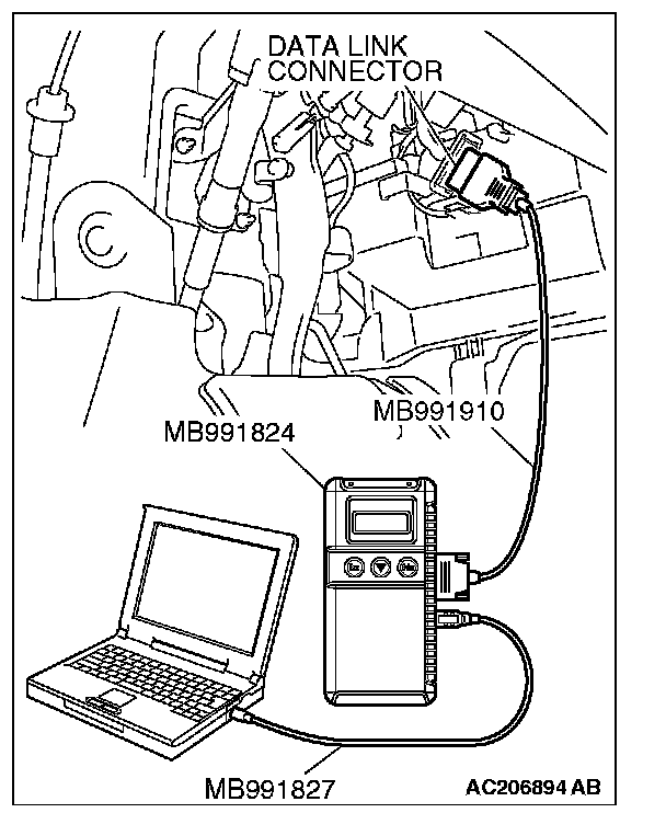 1) Connect scan tool MB991958 to the data link connector.