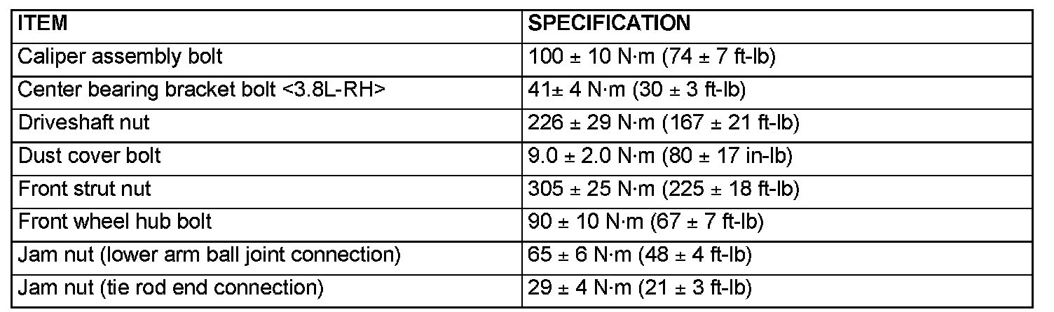 FASTENER TIGHTENING SPECIFICATIONS