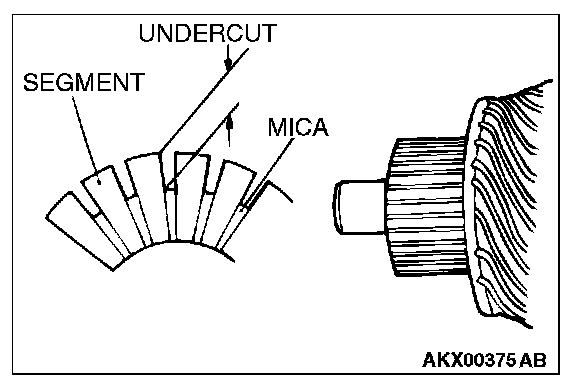 2. If the contacting surface has been corrected or the brush has been replaced, correct the contacting surface by winding sandpaper around the commutator.