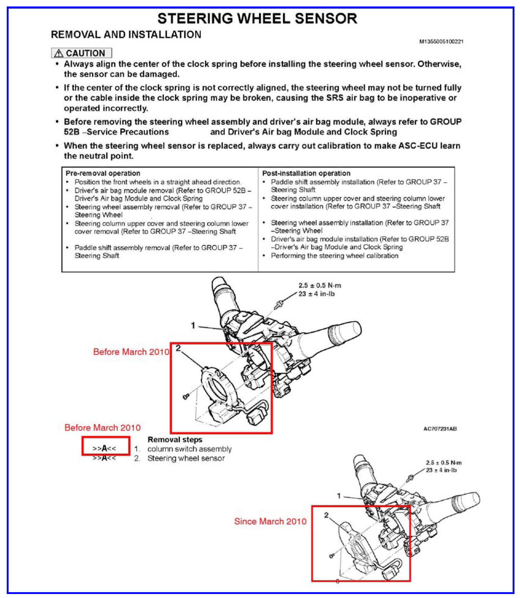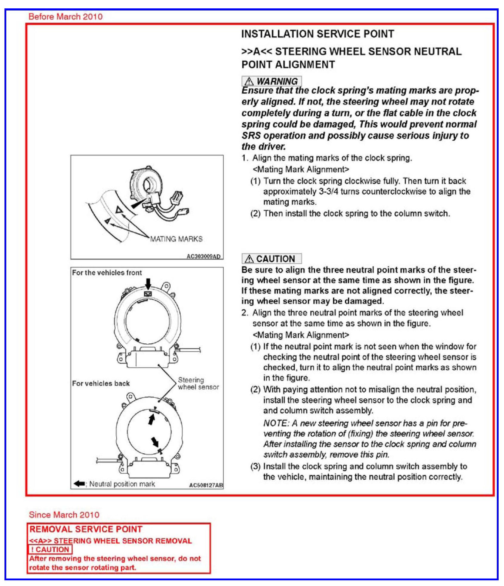 2010 Lancer Service Manual Group 35C - Steering Wheel Sensor Removal and Installation