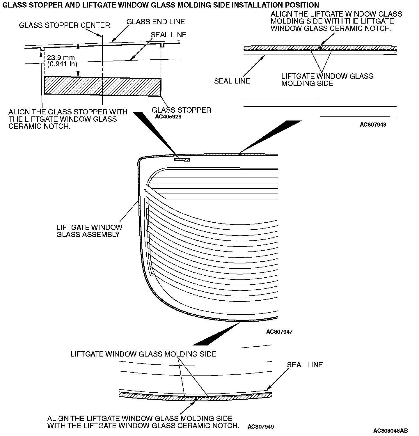 ]]A[[ GLASS STOPPER/LIFTGATE WINDOW GLASS MOLDING SIDE INSTALLATION