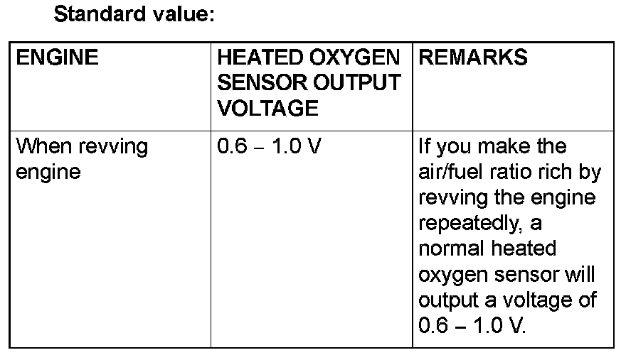 - If the sufficiently high temperature (of approximate 400 °C or more) is not reached although the oxygen sensor is normal, the output voltage would be possibly low although the rich air-fuel ratio.
