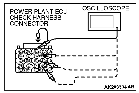 3. Connect the oscilloscope to check harness terminal No. 103. (Check the crankshaft position sensor signal wave pattern.)