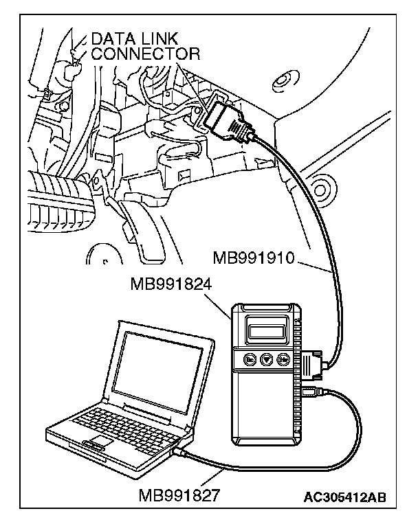12. Use the scan tool MB991958 to erase the diagnostic trouble codes.