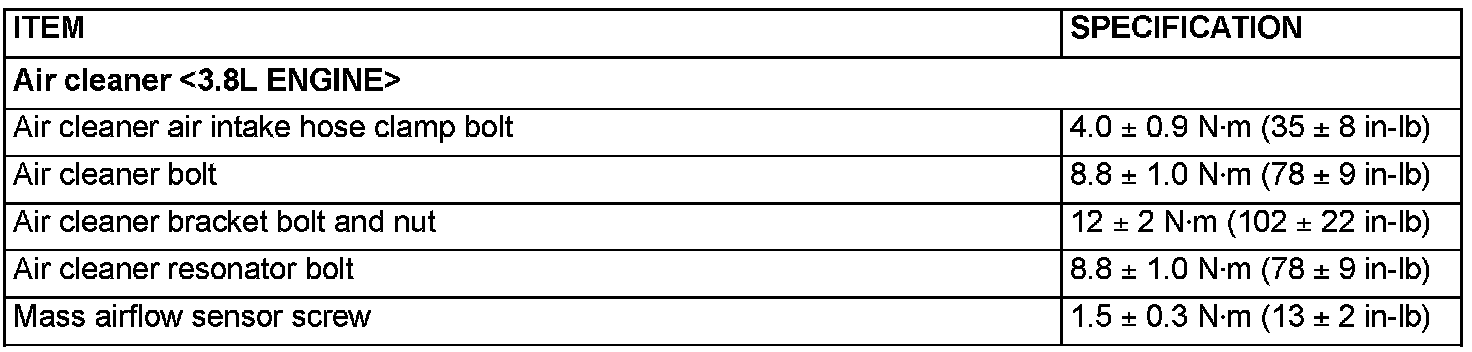 Air Cleaner - Fastener Tightening Specifications: