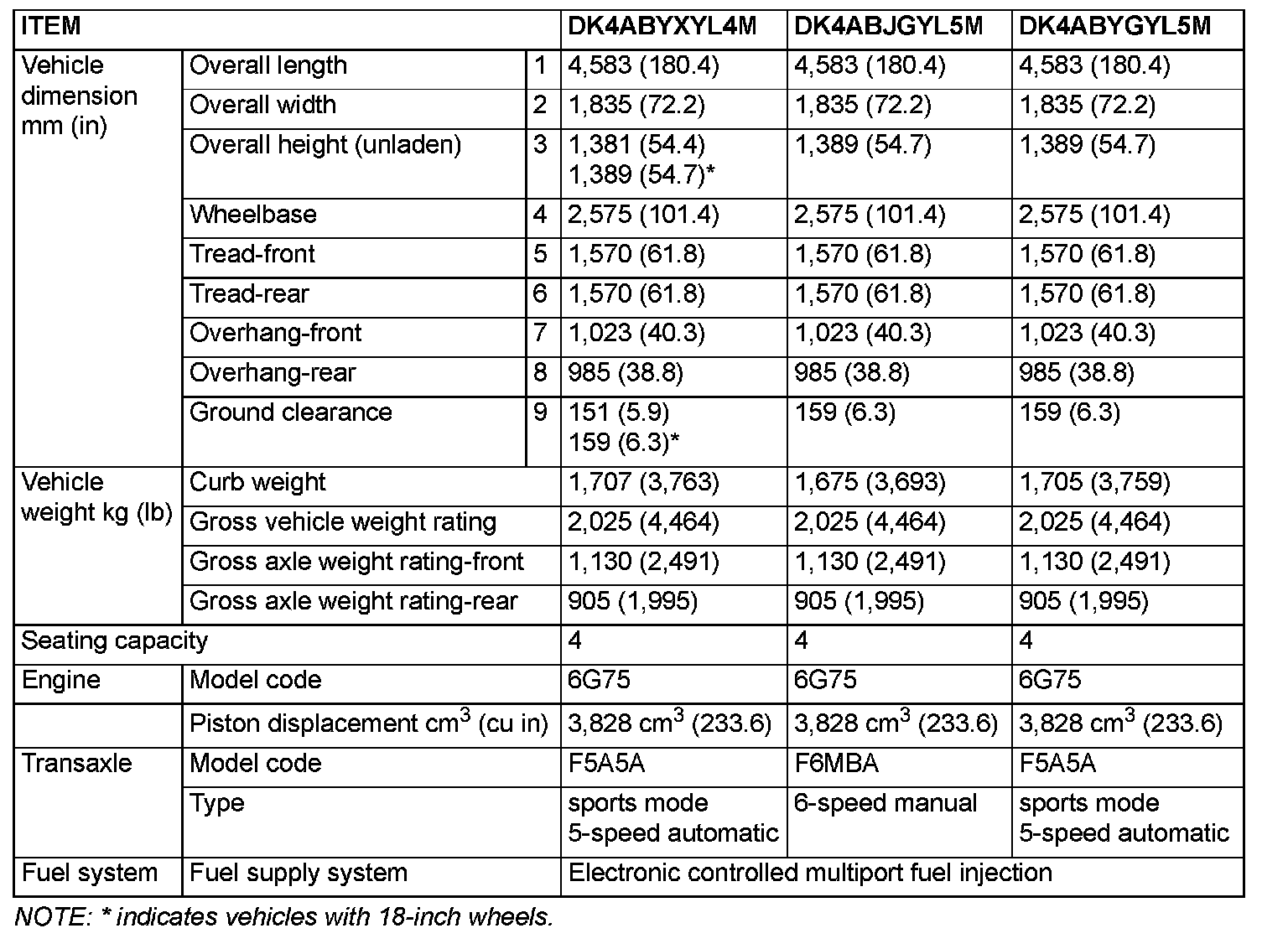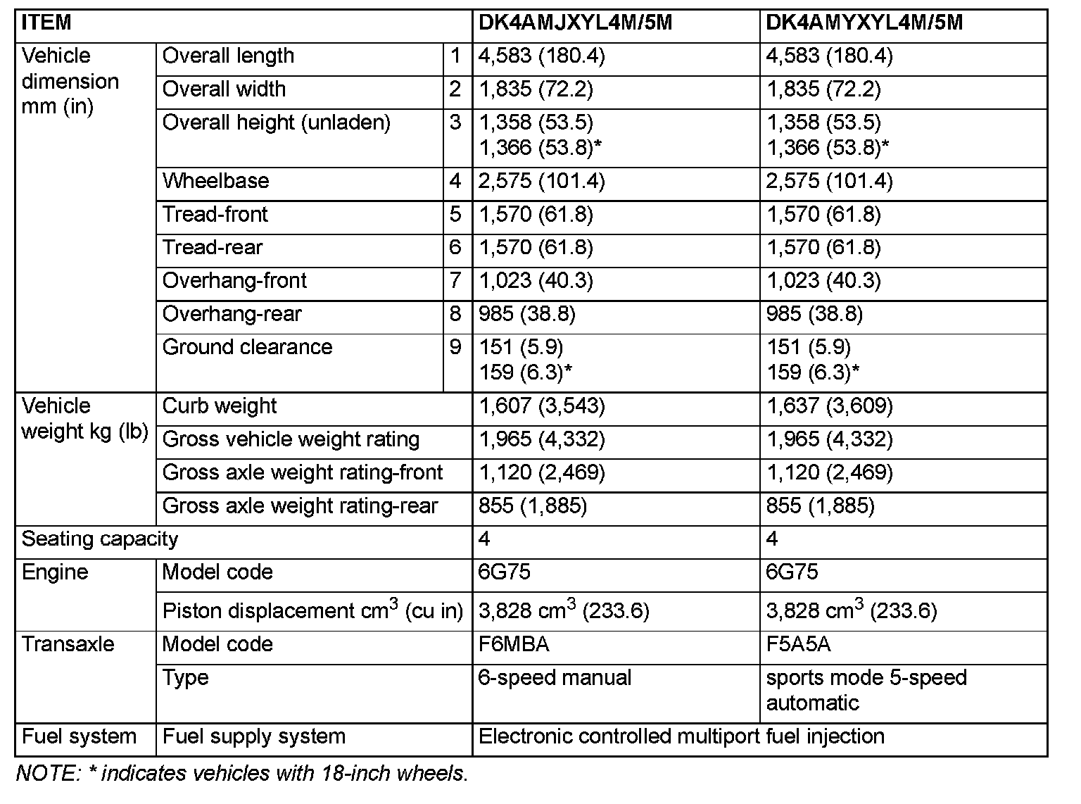 GENERAL SPECIFICATIONS (3.8L ENGINE)