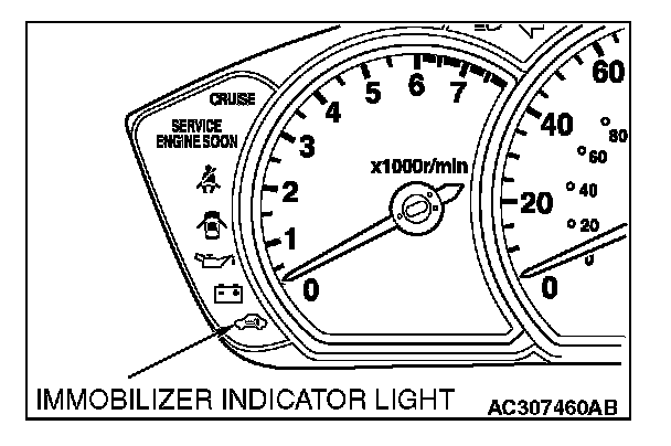 NOTE: When an error occurs while the immobilizer indicator light is flashing, the immobilizer indicator light extinguishes.
