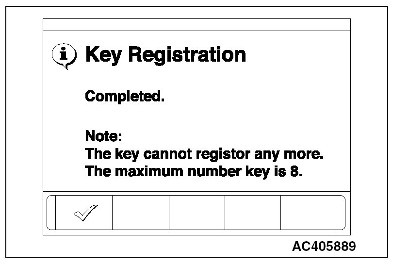 10. A maximum of eight ignition keys can be registered. When the registration of the eighth ignition key is finished, key registration completion menu is displayed. Press the OK button and finish the ignition key registration.