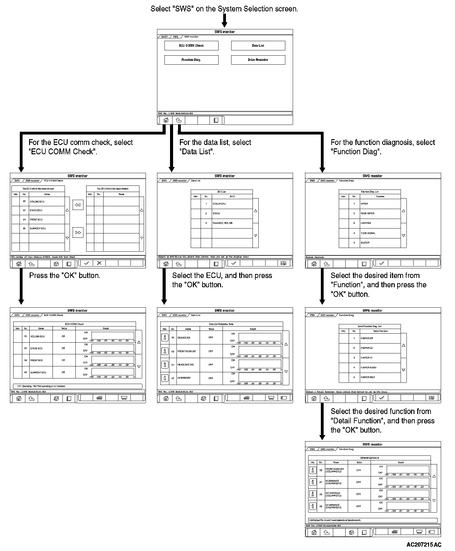 To carry out troubleshooting, operate scan tool MB991958 (M.U.T.-III Sub Assembly) as follows.