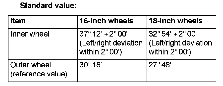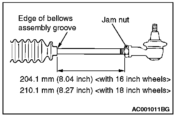 3. If not within the standard value, adjust the tie-rods (right and left), and repeat Steps 1 and 2.