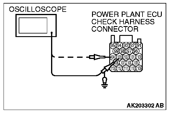 3. Connect the oscilloscope to check harness terminal No. 103. (Check the crankshaft position sensor signal wave pattern.)