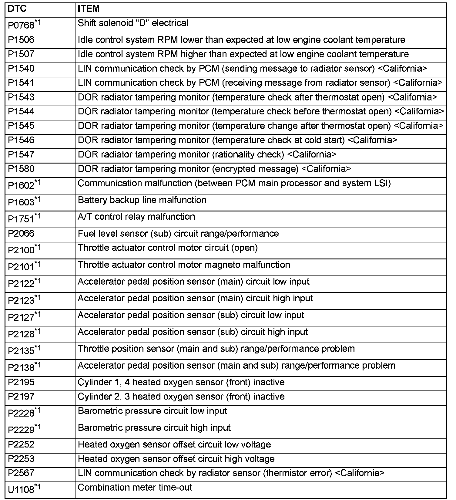 - The codes marked with a "*2" in the diagnosis code number column have the following two conditions for illuminating the Malfunction Indicator Lamp (SERVICE ENGINE SOON or Check Engine Lamp).