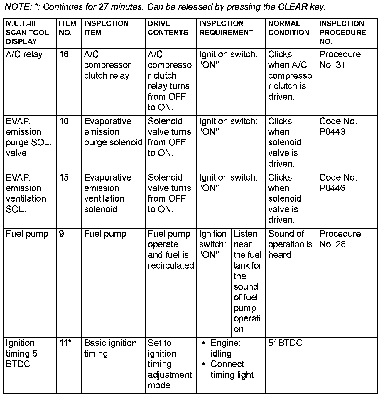Actuator Test Reference Table (Part 1):