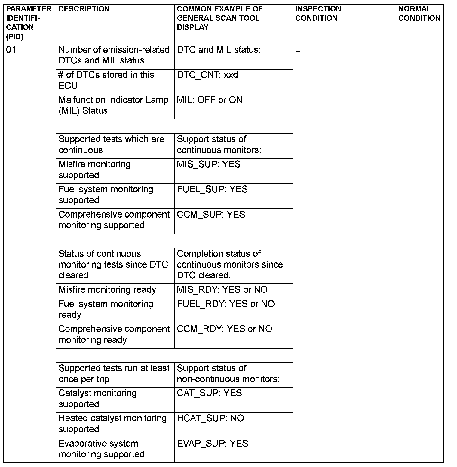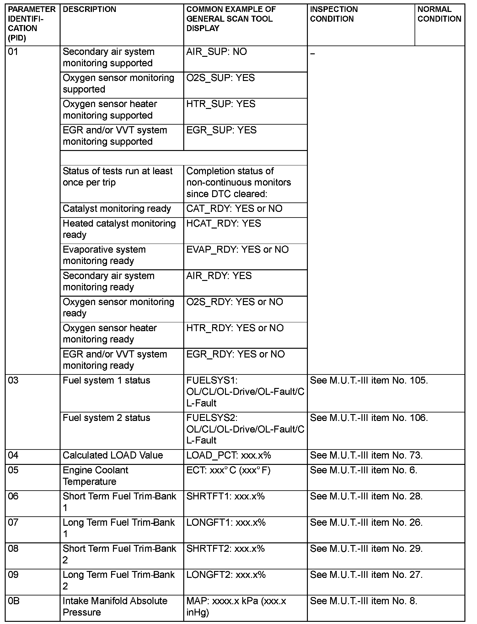 GENERAL SCAN TOOL (GST) MODE 01 REFERENCE TABLE