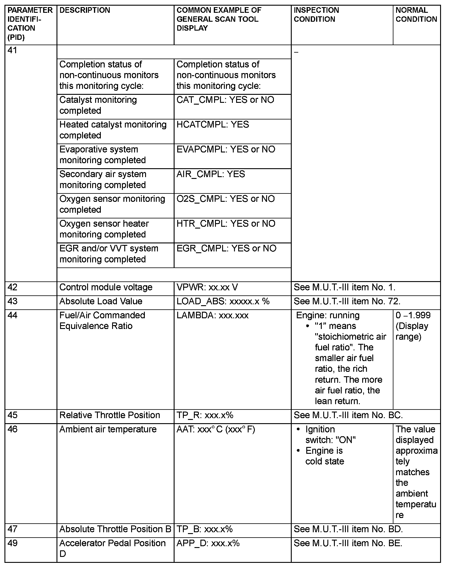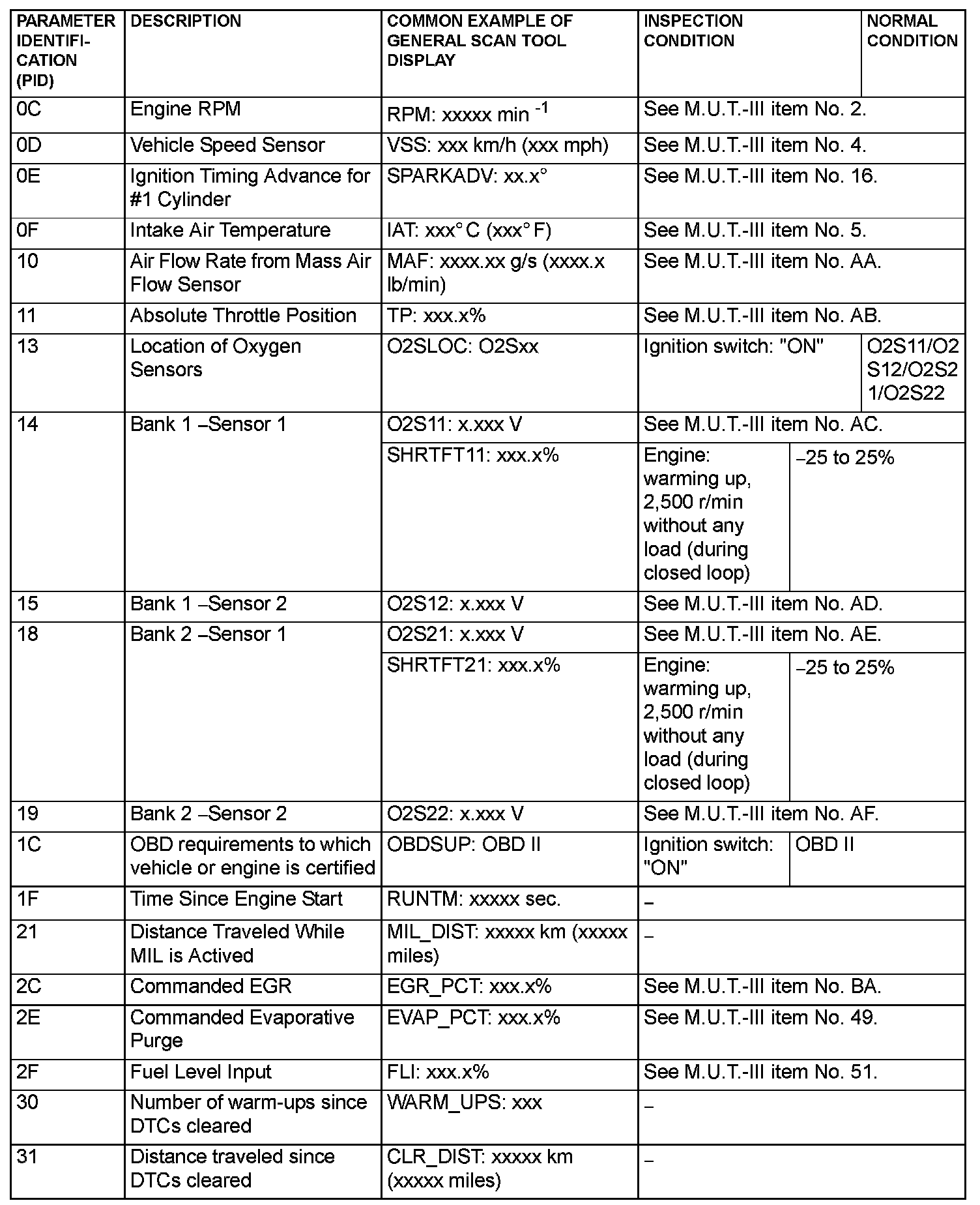 NOTE: GST MODE 01 can be accessed through the use of a general scan tool.