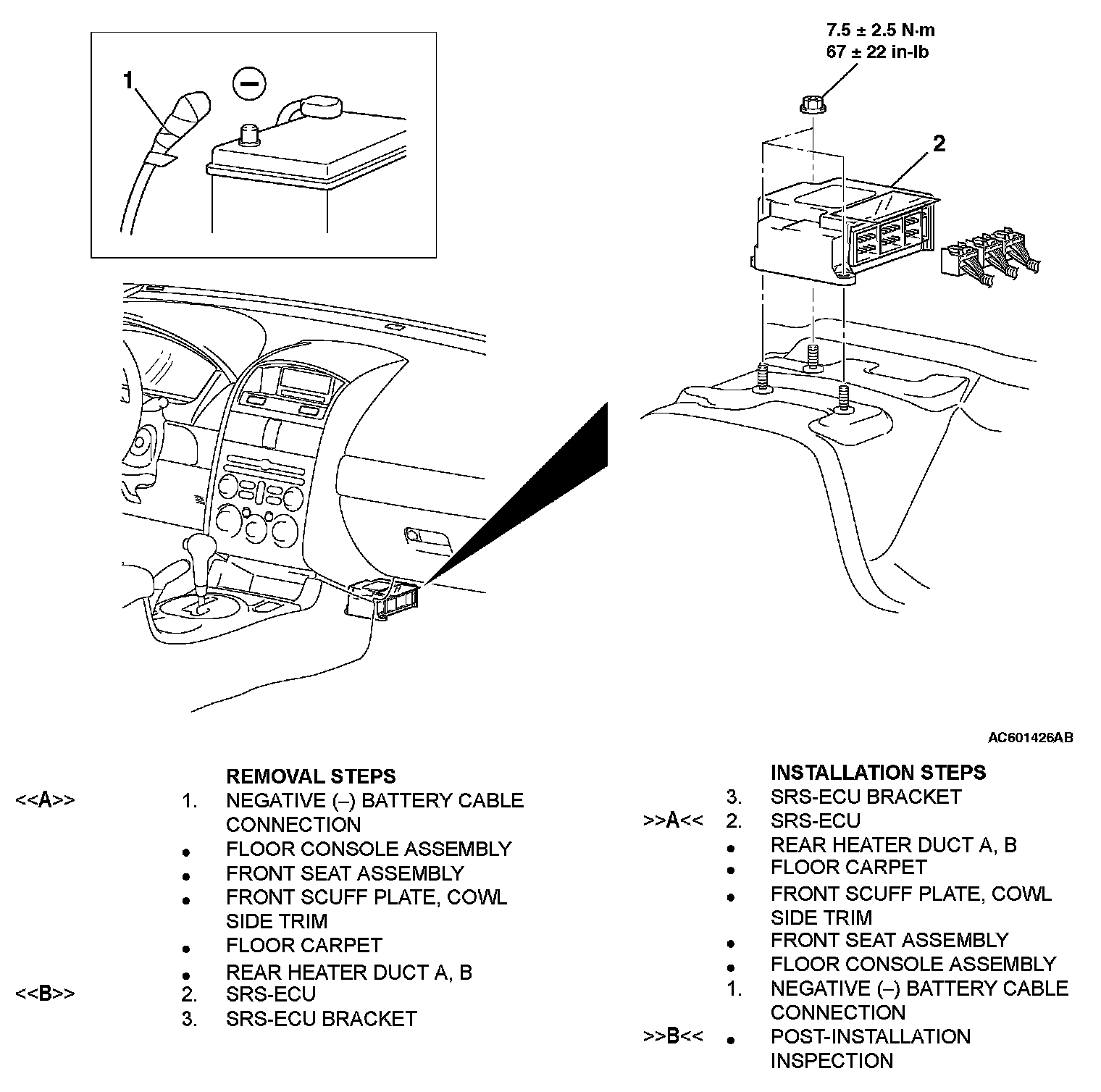 SRS CONTROL UNIT (SRS-ECU)REMOVAL AND INSTALLATION
