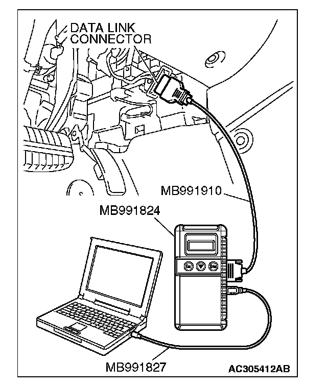 2. Connect scan tool MB991958 to the data link connector.