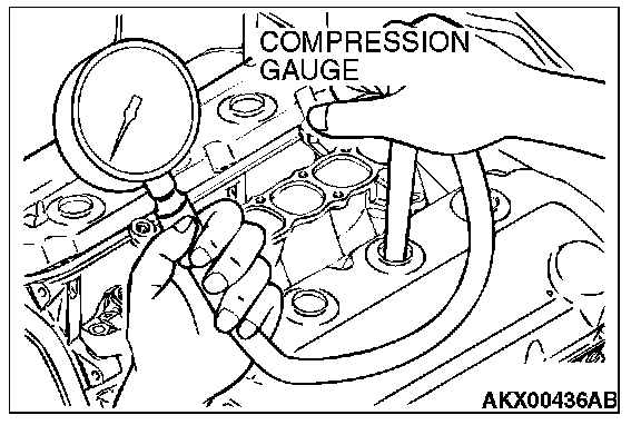 8. If there is a cylinder with compression or a compression difference that is outside the limit, pour a small amount of engine oil through the spark plug hole, and repeat the operations in steps 5 to 7.