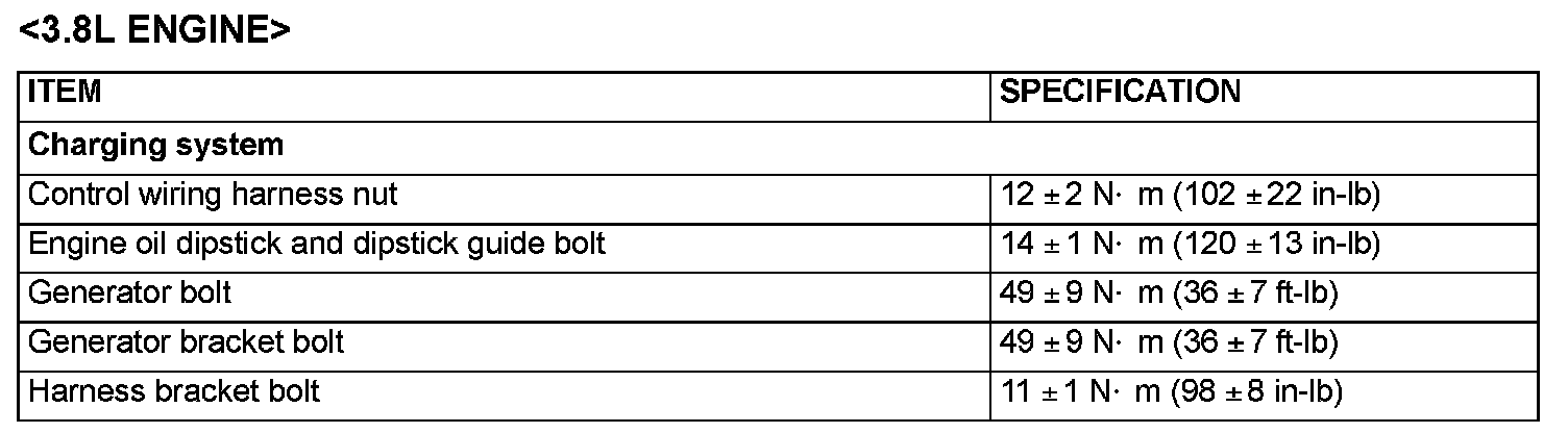 Fastener Tightening Specification - Charging System: