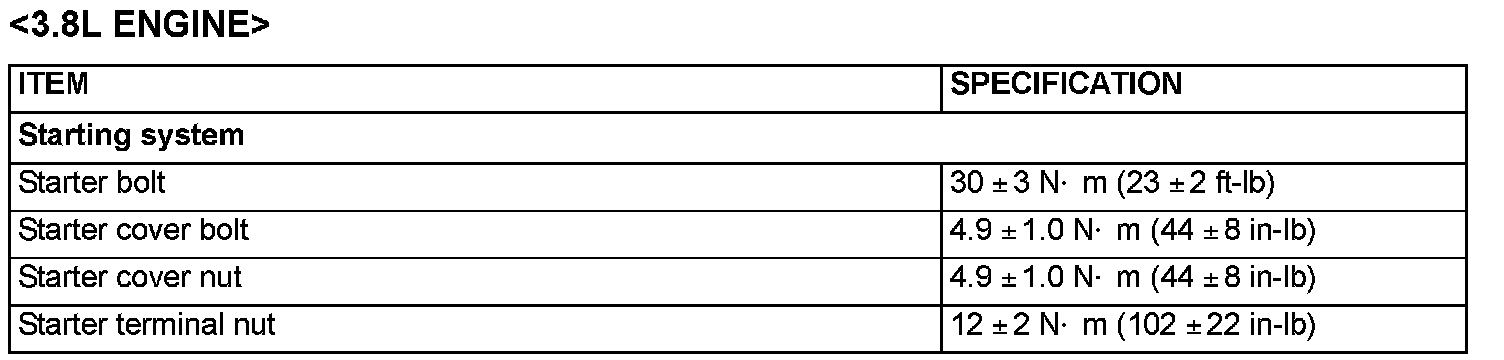 Fastener Tightening Specification - Starting System: