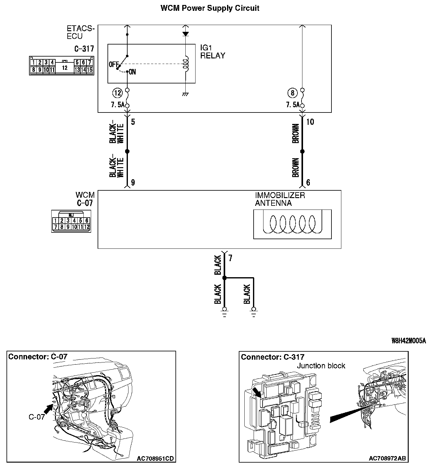 Q: Is the WCM connector C-07 and ETACS-ECU connector C-317 in good condition?
