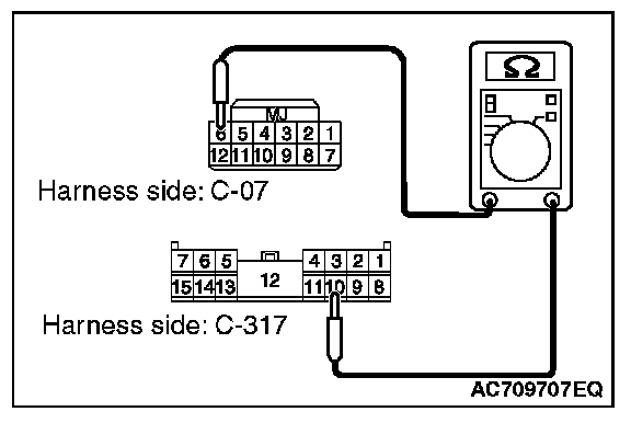 1. Disconnect WCM connector C-07 and ETACS-ECU connector C-317, and check the wiring harness.