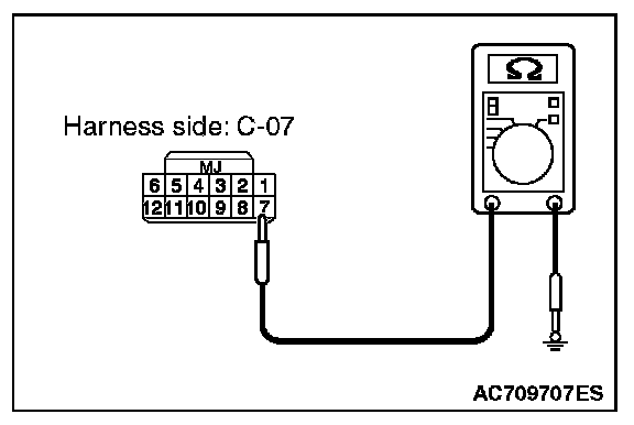 2. Check the wiring harness between WCM connector C-07 (terminal No.7) and ground.