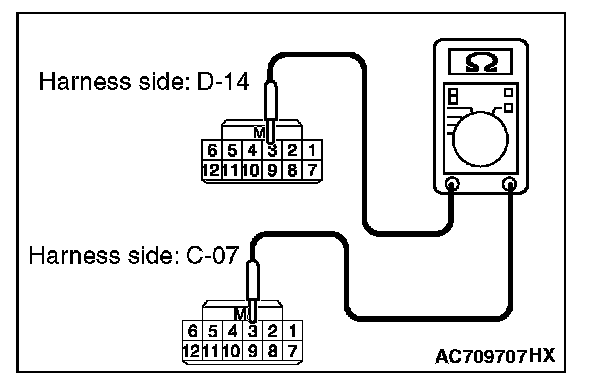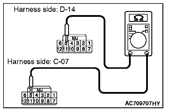 STEP 7. Check the wiring harness between the receiver antenna assembly connector D-14 (terminal Nos. 1, 3 and 5) and the WCM connector C-07 (terminal Nos. 1, 3 and 5) for open circuit.