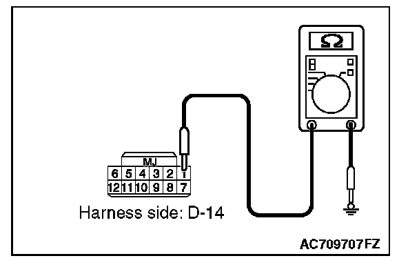NO (receiver antenna assembly connector D-14 terminal No.1 - ground.): Repair the wiring harness between receiver antenna assembly connector D-14 (terminal No.1) and the ground.