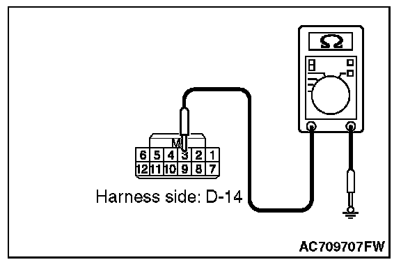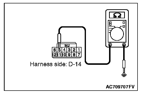 STEP 8. Check the wiring harness between the receiver antenna assembly connector D-14 (terminal Nos. 1, 3 and 5) and the ground for short circuit.
