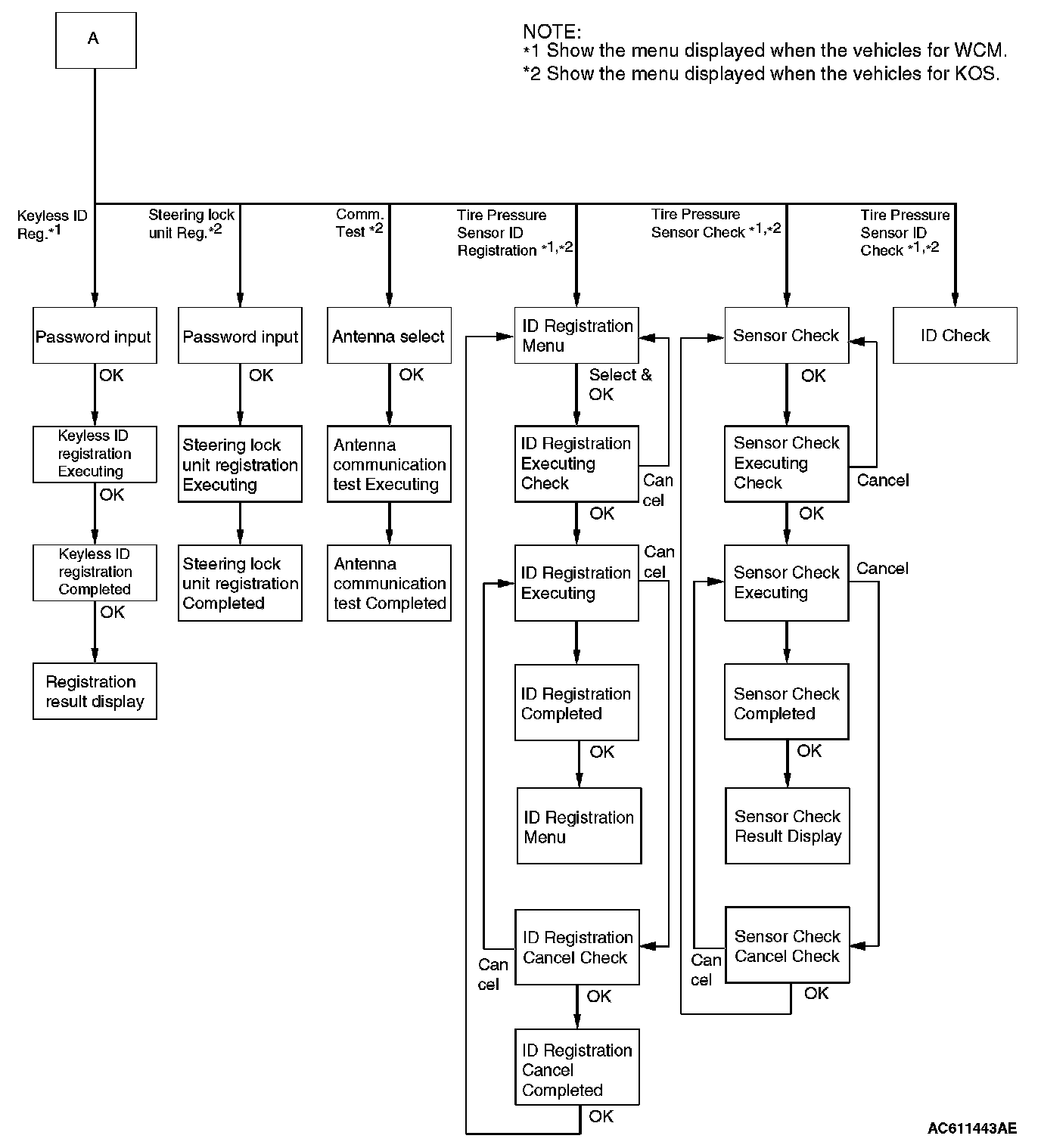 - "Steering lock unit Reg.": When KOS-ECU is replaced but the steering lock assembly is not replaced.