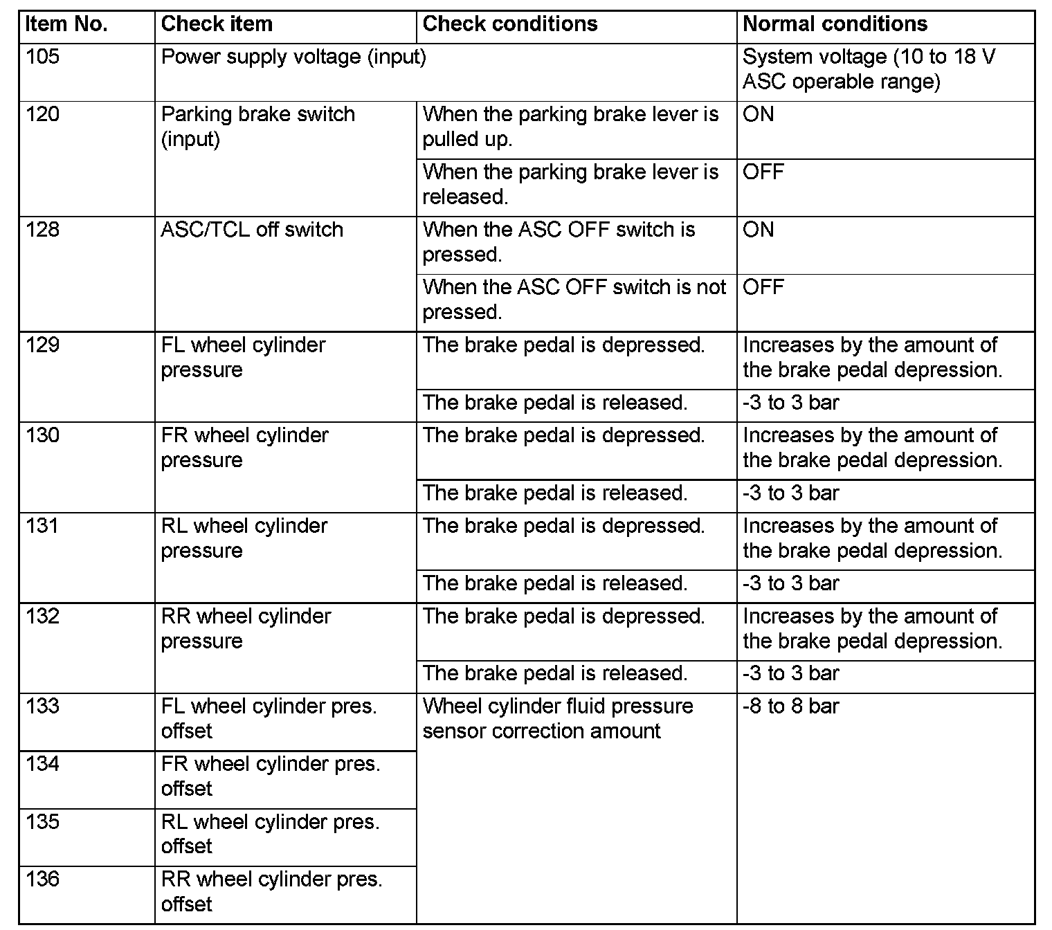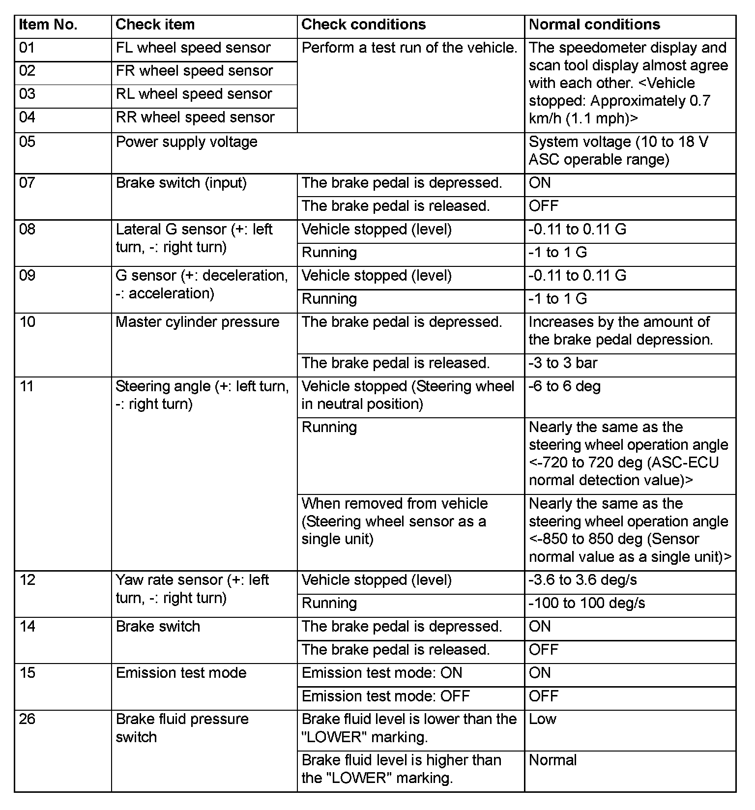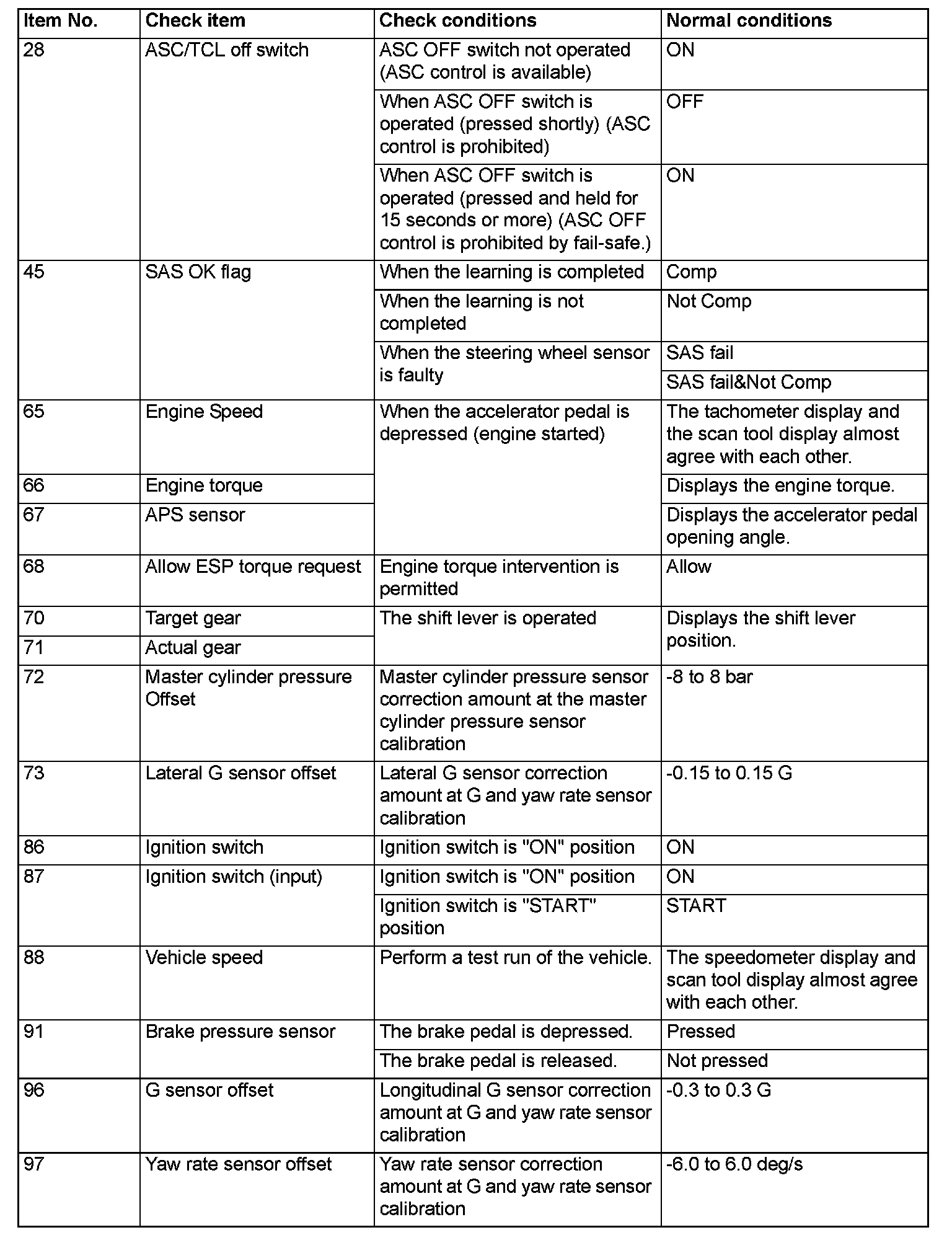 DATA LIST REFERENCE TABLEThe following items of ECU input data can be read using the scan tool.