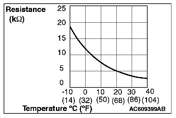 Measure the resistance between the sensor terminals under at least two temperatures. The resistance values should meet the values shown.