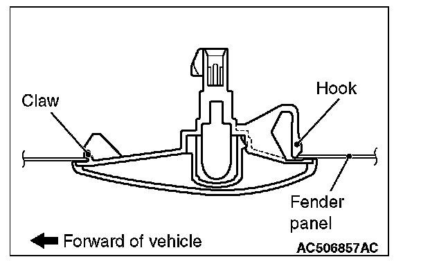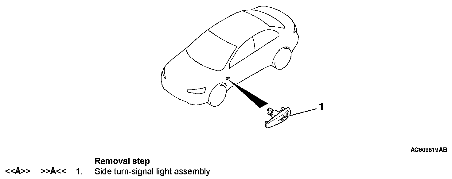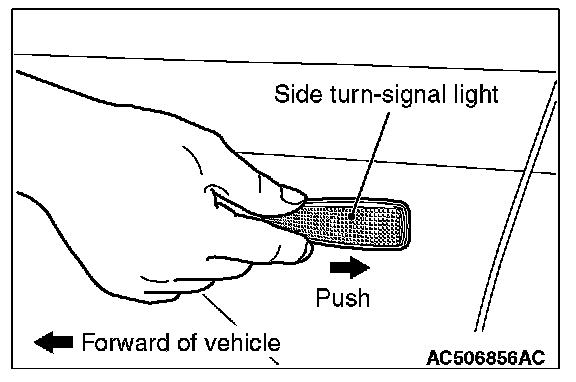 Push the side turn-signal light toward the vehicle rear to bend the hook, and then remove by disengaging the tab from the fender panel.