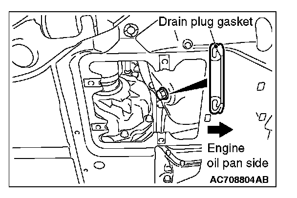 5. Install a new drain plug gasket so that it faces in the direction shown in the illustration, and then tighten the drain plug to the specified torque.
