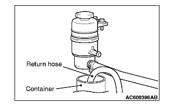 2. Disconnect the return hose connection, and then connect a vinyl hose to the return hose, and drain the fluid into a container.