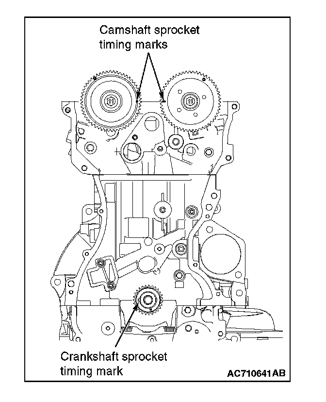 TIMING CHAIN INSTALLATION1. Set the timing marks of the camshaft sprockets and the crankshaft sprocket as shown in the figure.