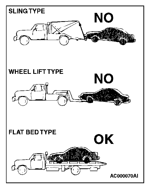 ^ The vehicle must not be towed by placing only its front wheels on a rolling dolly, because to do so will result in deterioration of the viscous coupling and in the viscous coupling causing the vehicle to jump forward suddenly.