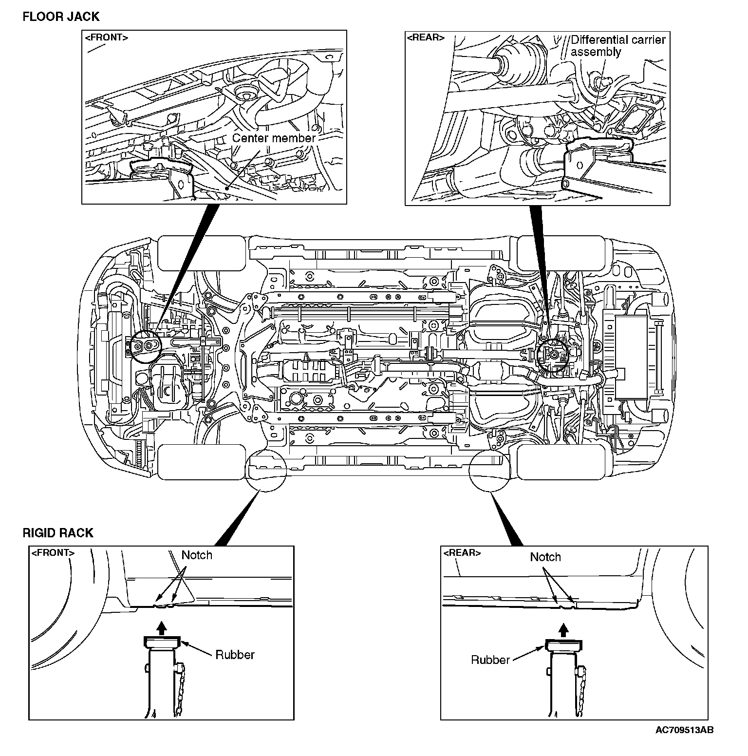 LIFTING, JACKING SUPPORT LOCATION FLOOR JACK AND RIGID RACK