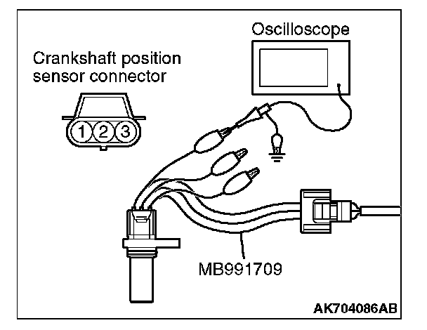 3. Disconnect the crankshaft position sensor connector, and0connect the test harness special tool (MB991709) between the separated connector (All terminals should be connected).