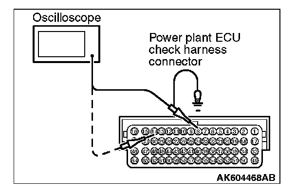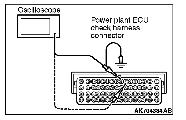 3. Connect the oscilloscope to check harness terminal No. 8. (Check the crankshaft position sensor signal wave pattern.)