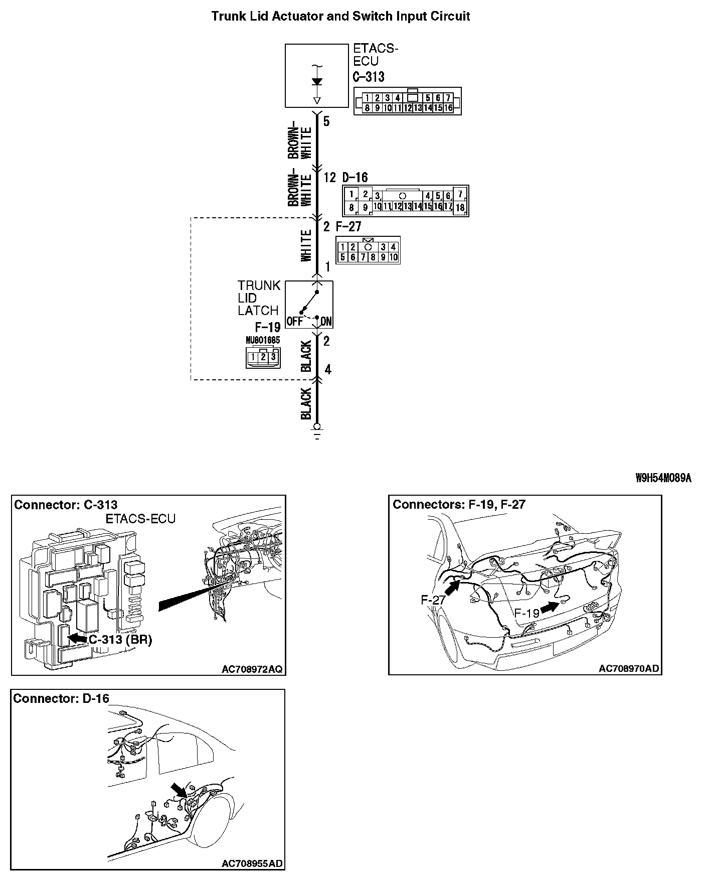 INSPECTION PROCEDURE 9: ETACS-ECU Does Not Receive Any Signal From The Trunk Lid Latch.Trunk Lid Actuator And Switch Input Circuit: