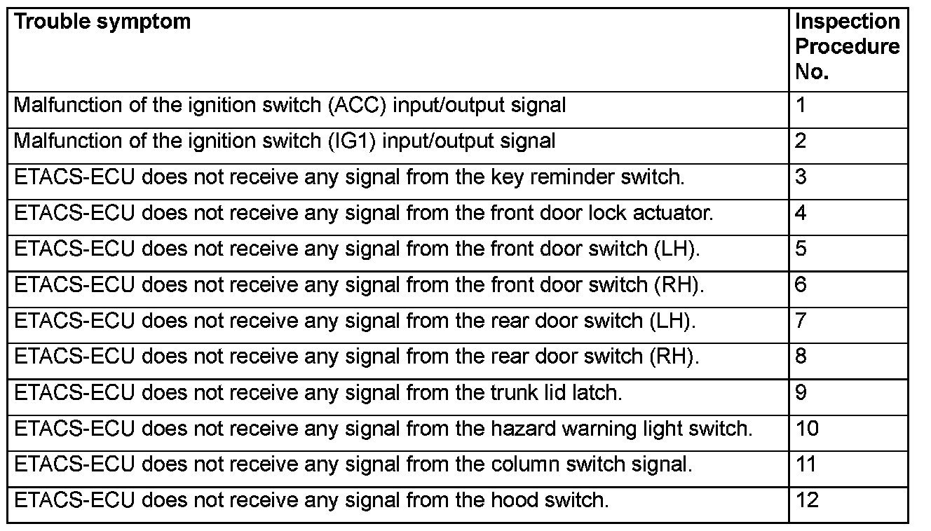 TROUBLE SYMPTOM CHART FOR INPUT SIGNAL: