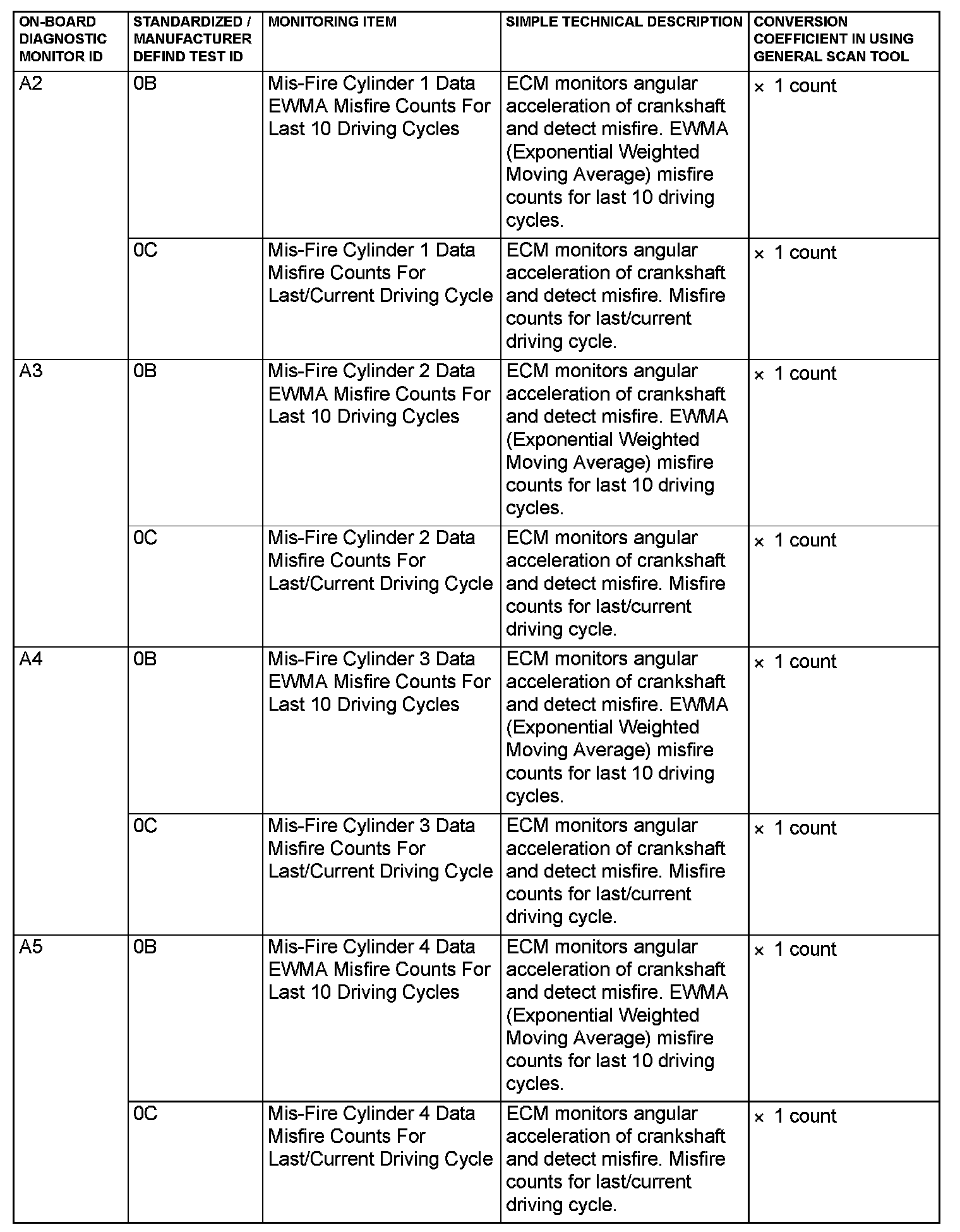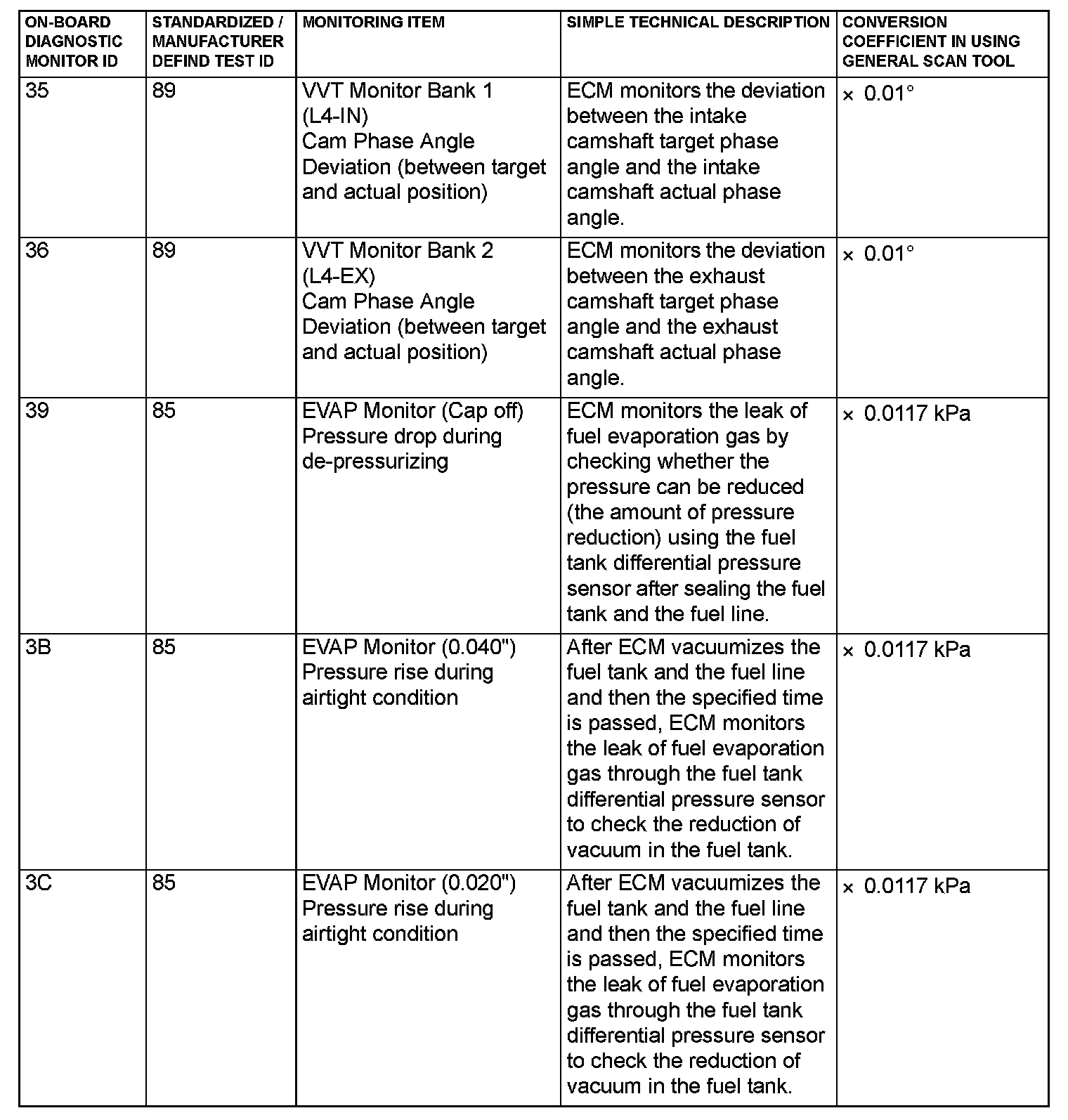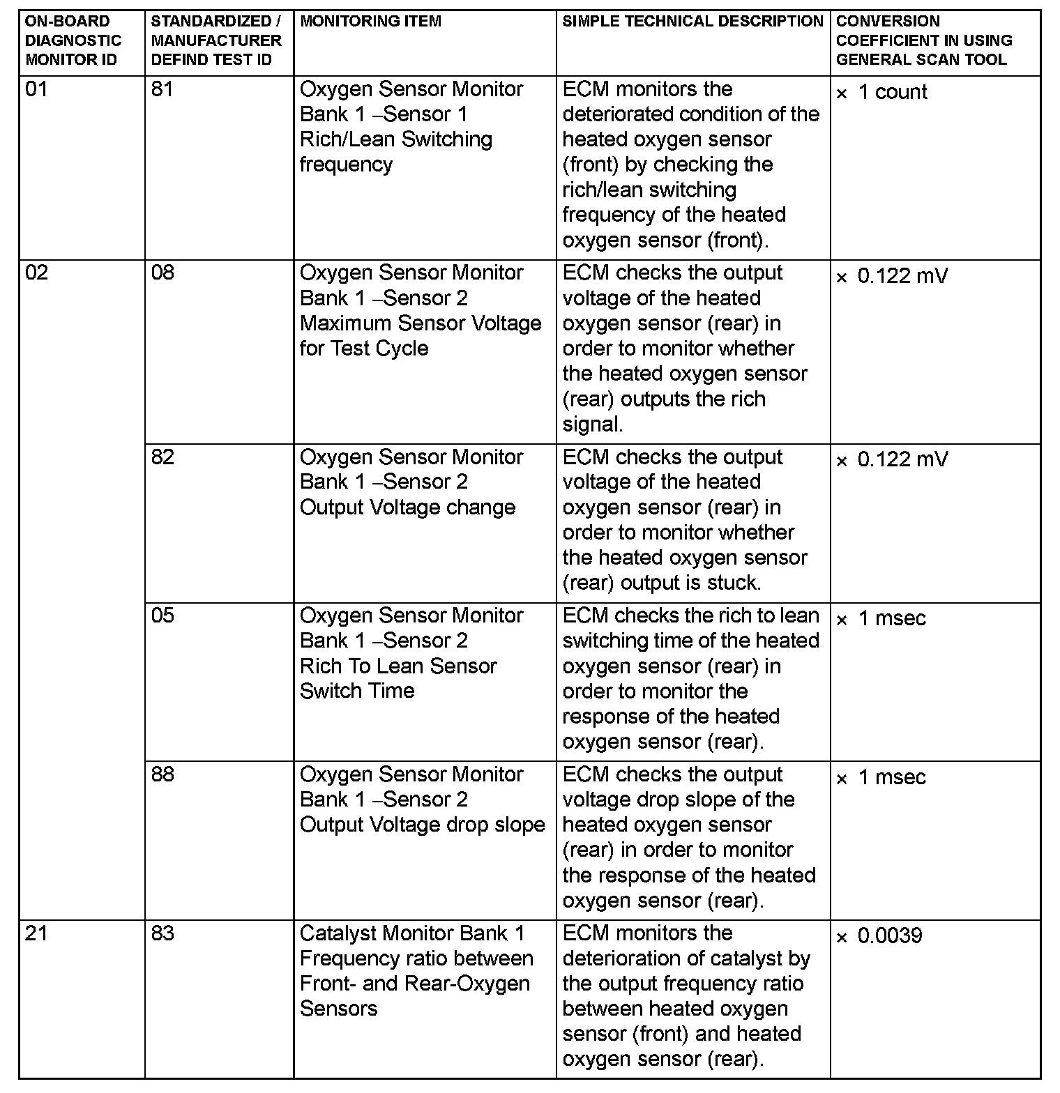 MODE 6 REFERENCE TABLEThe engine control module (ECM) monitors the condition of emission control system.