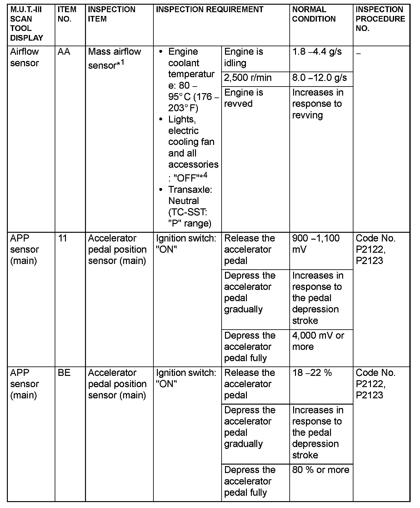 - *1: In a new vehicle [driven approximately 500 km (311 mile) or less], the mass airflow sensor output value is sometimes 10 % higher than the standard value.