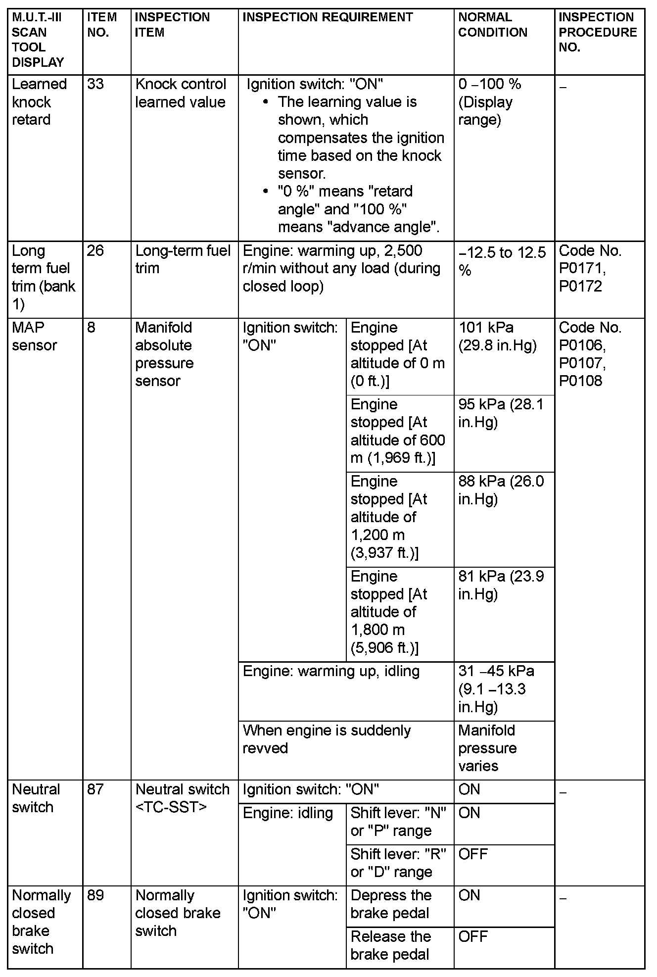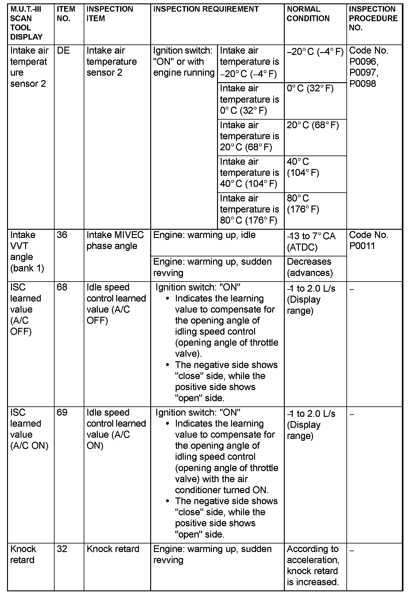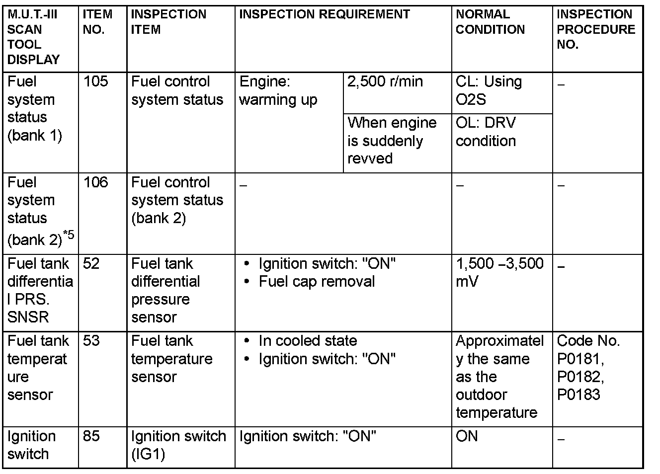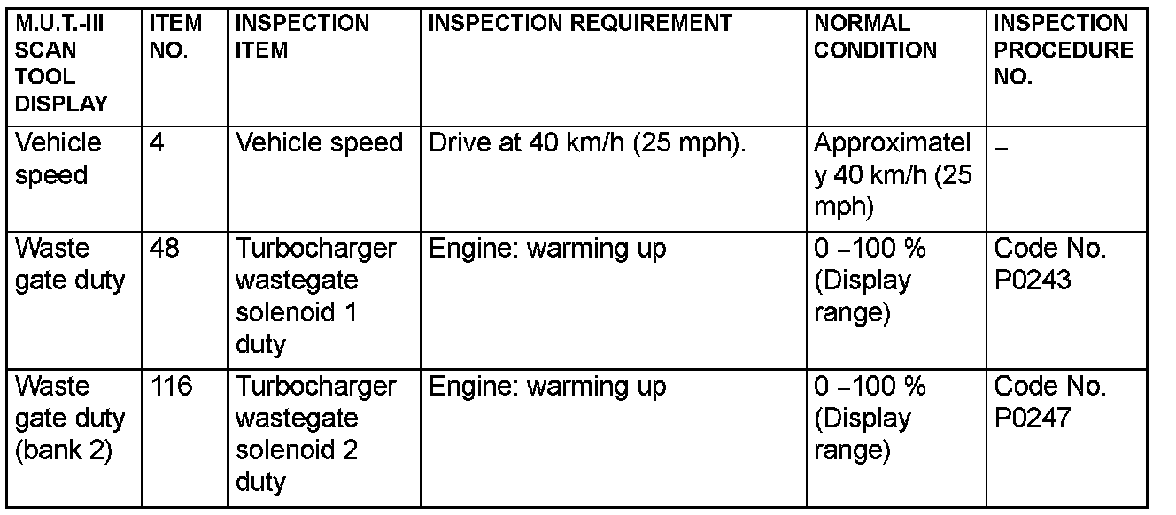 - *5: Data items are displayed on M.U.T.-III display, but the in-line 4 engine is not applicable and its data is displayed as "N/A".