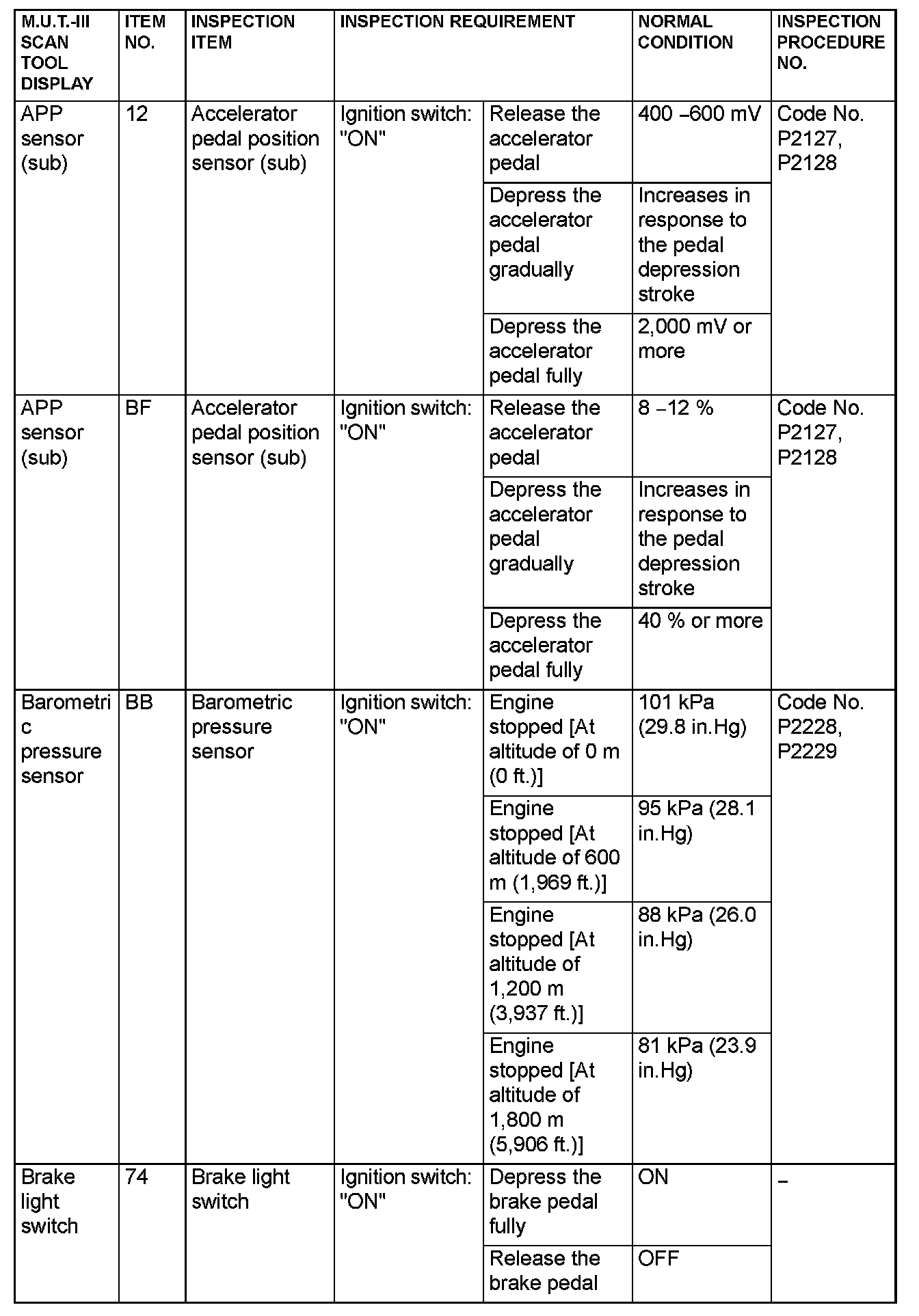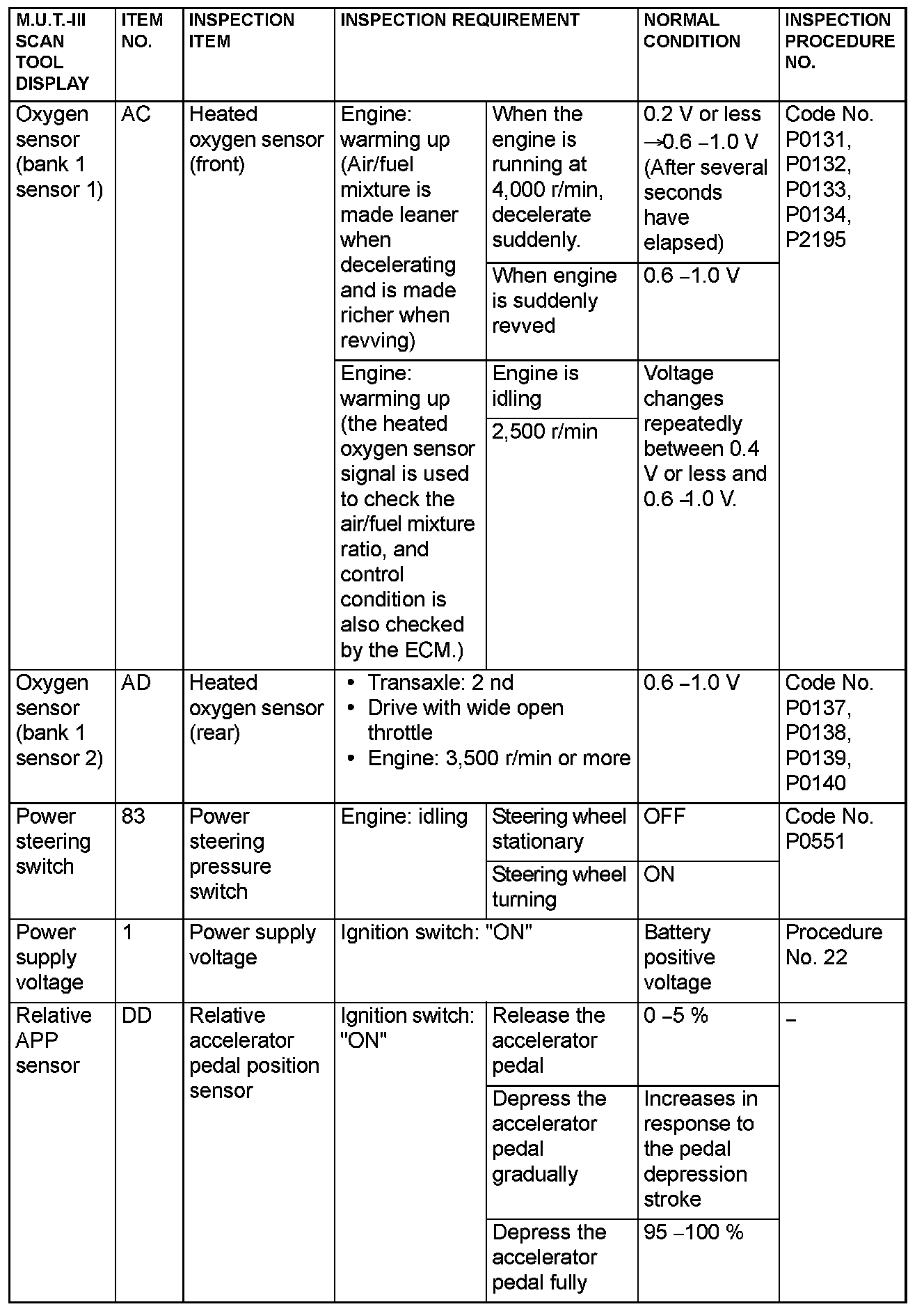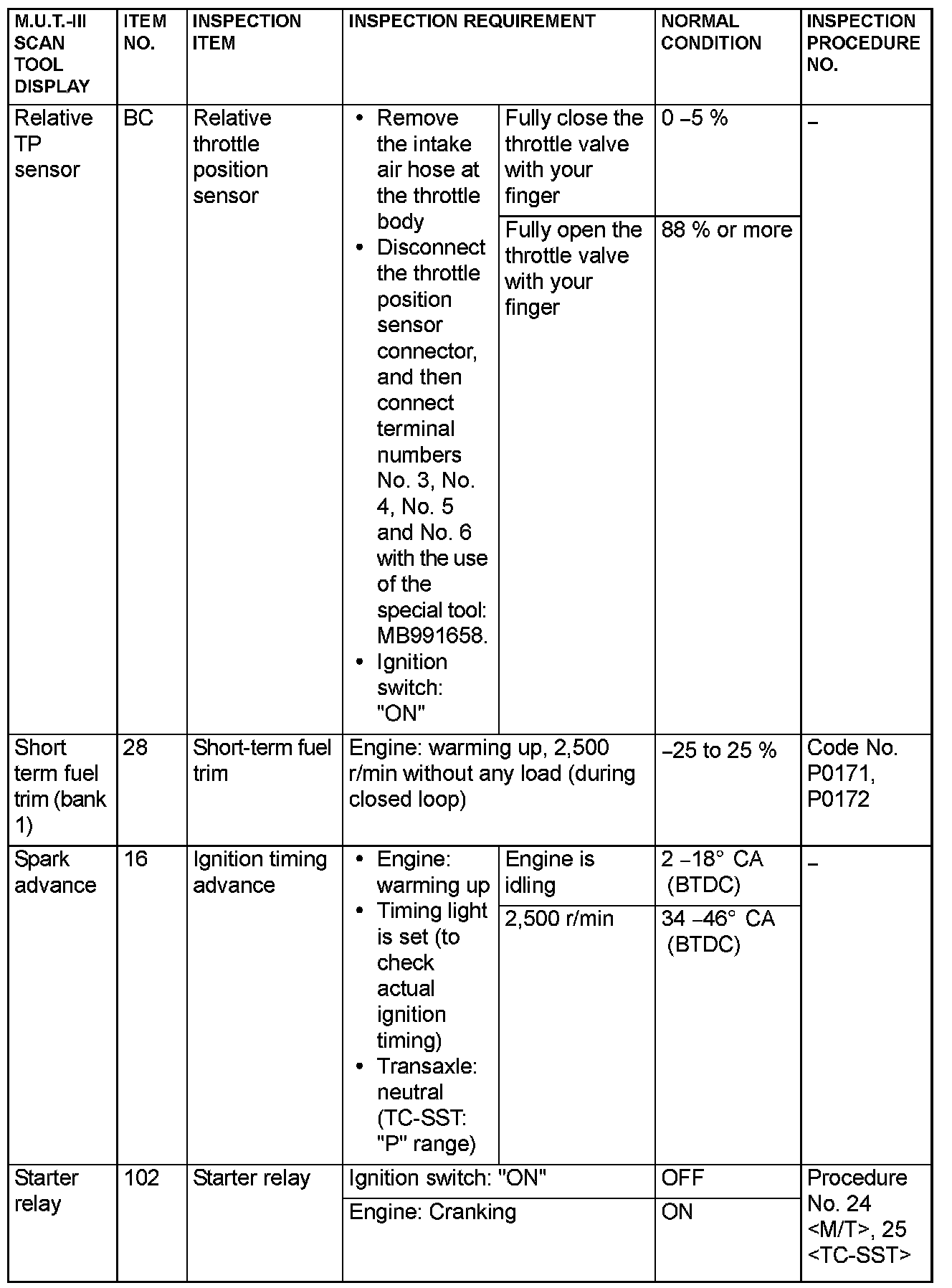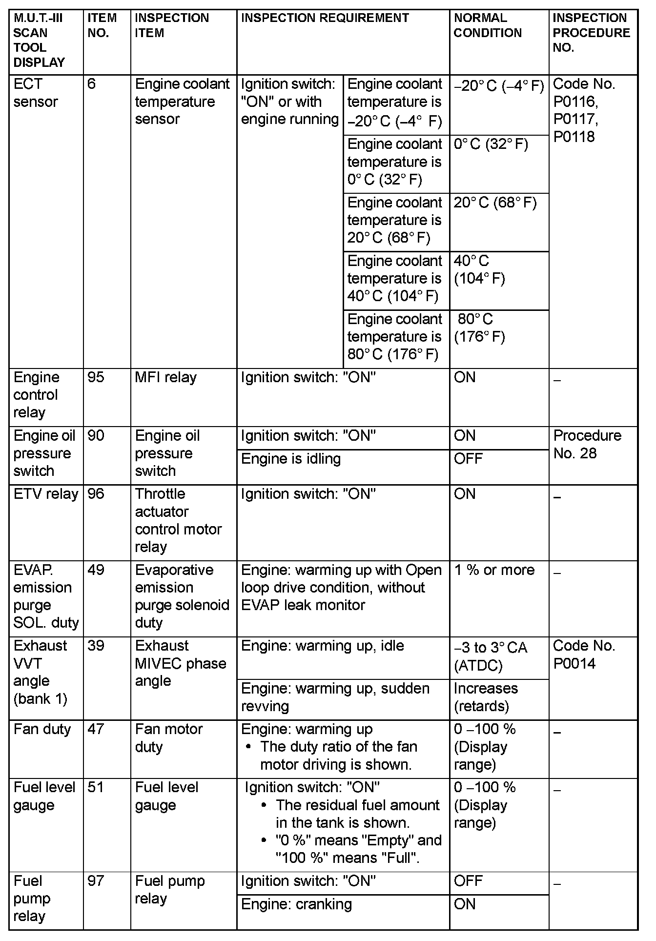 - *5: Data items are displayed on M.U.T.-III display, but the in-line 4 engine is not applicable and its data is displayed as "N/A".