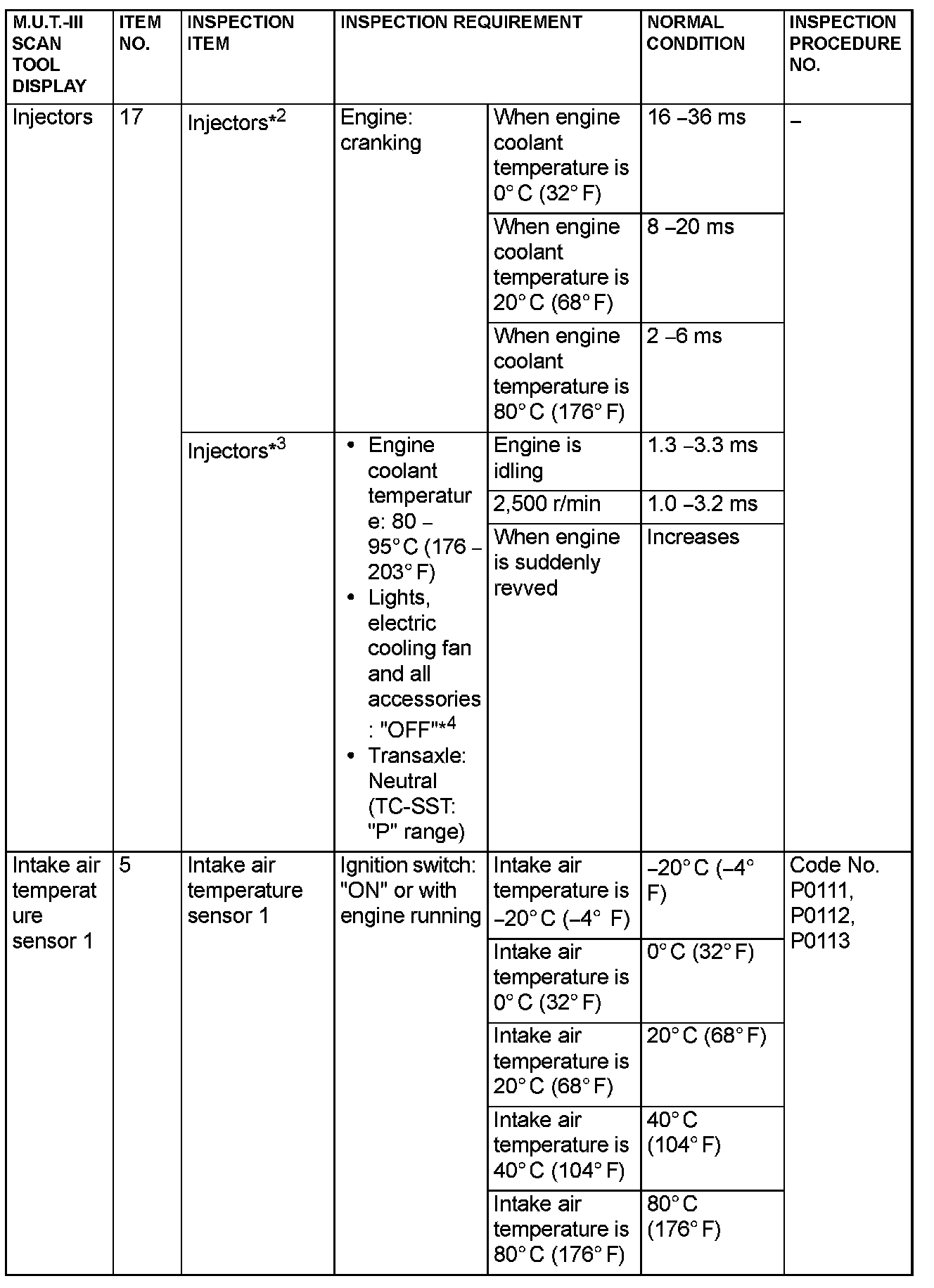 - *3: In a new vehicle [driven approximately 500 km (311 mile) or less], the injector drive time is sometimes 10 % longer than the standard time.