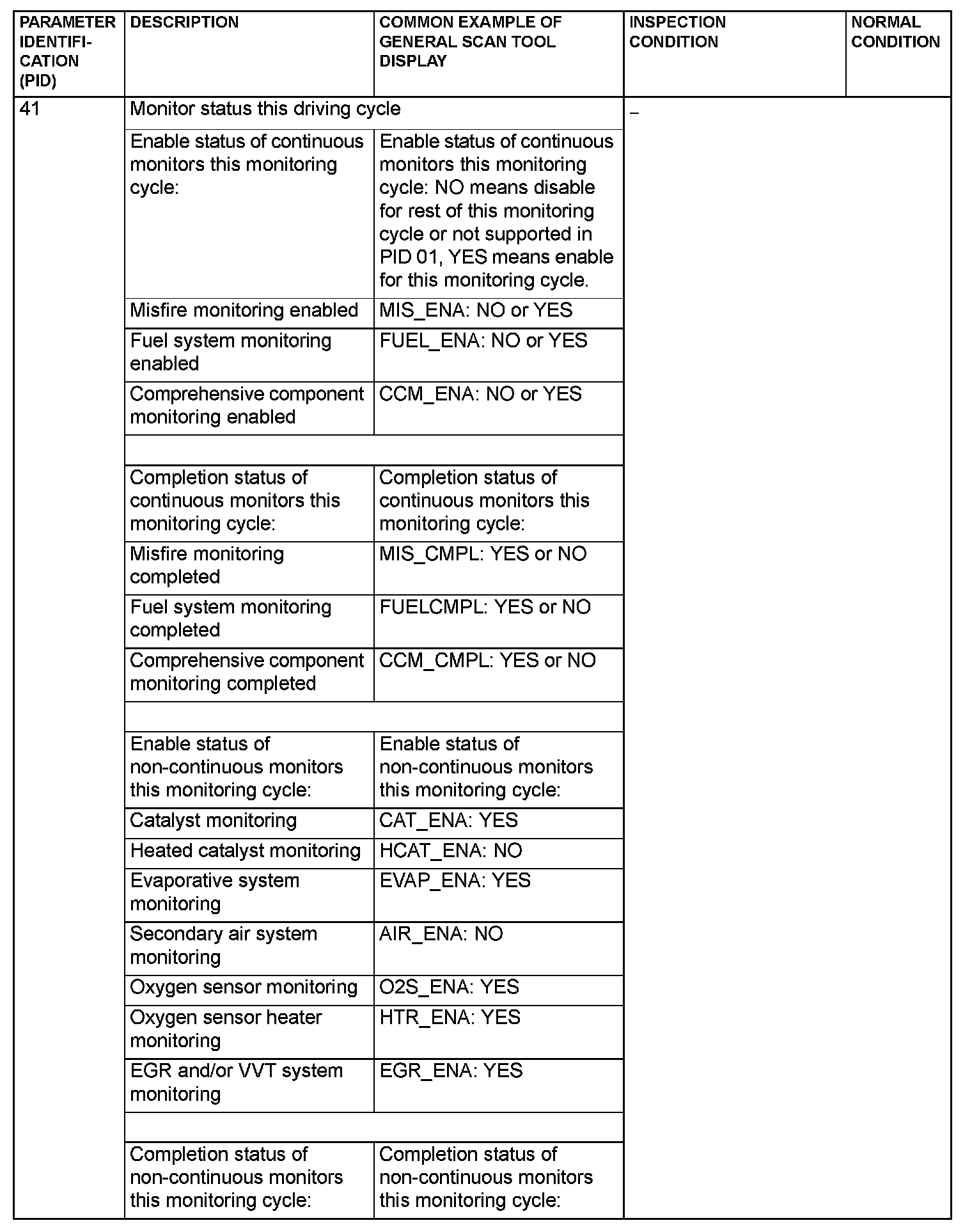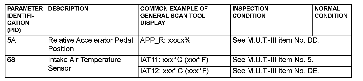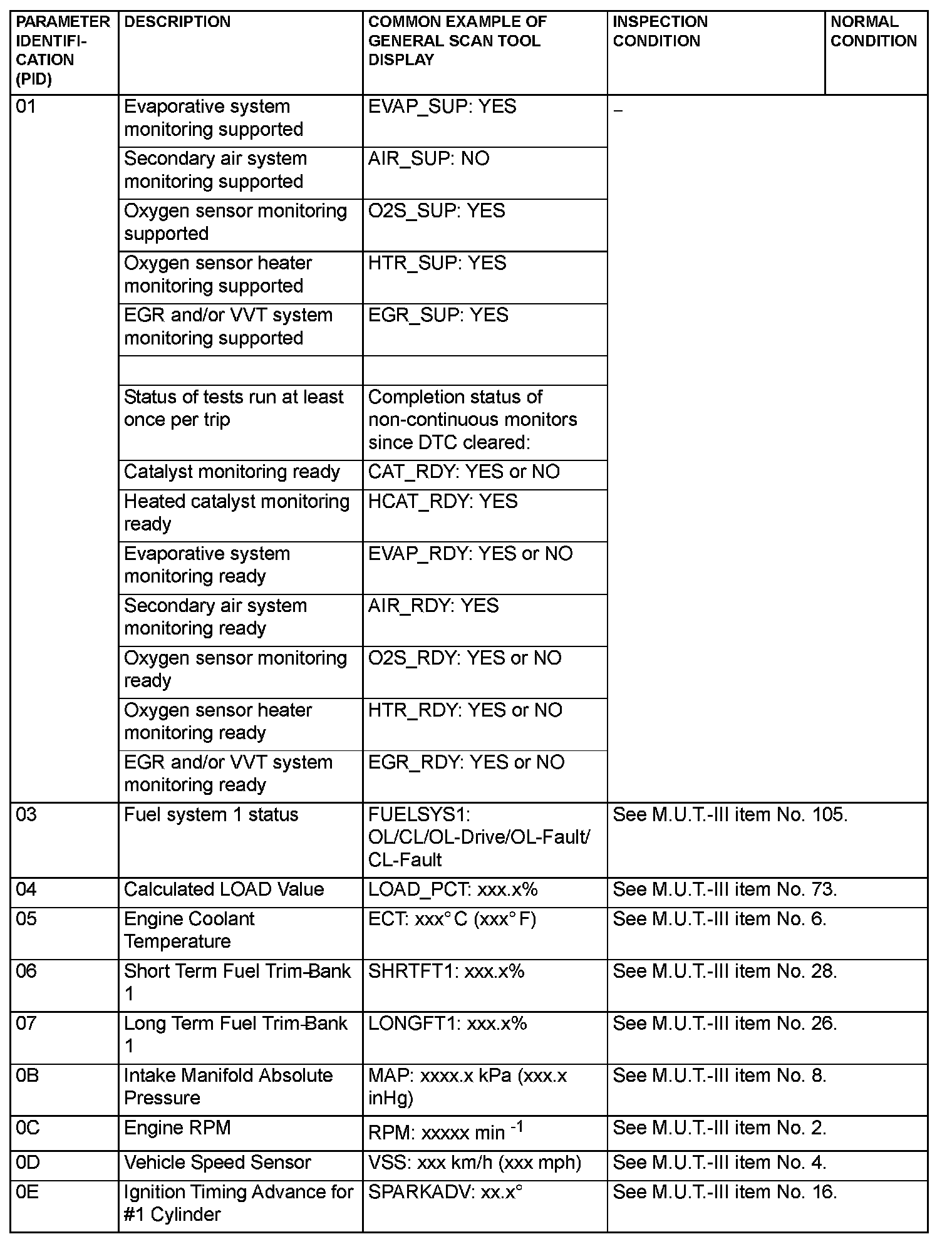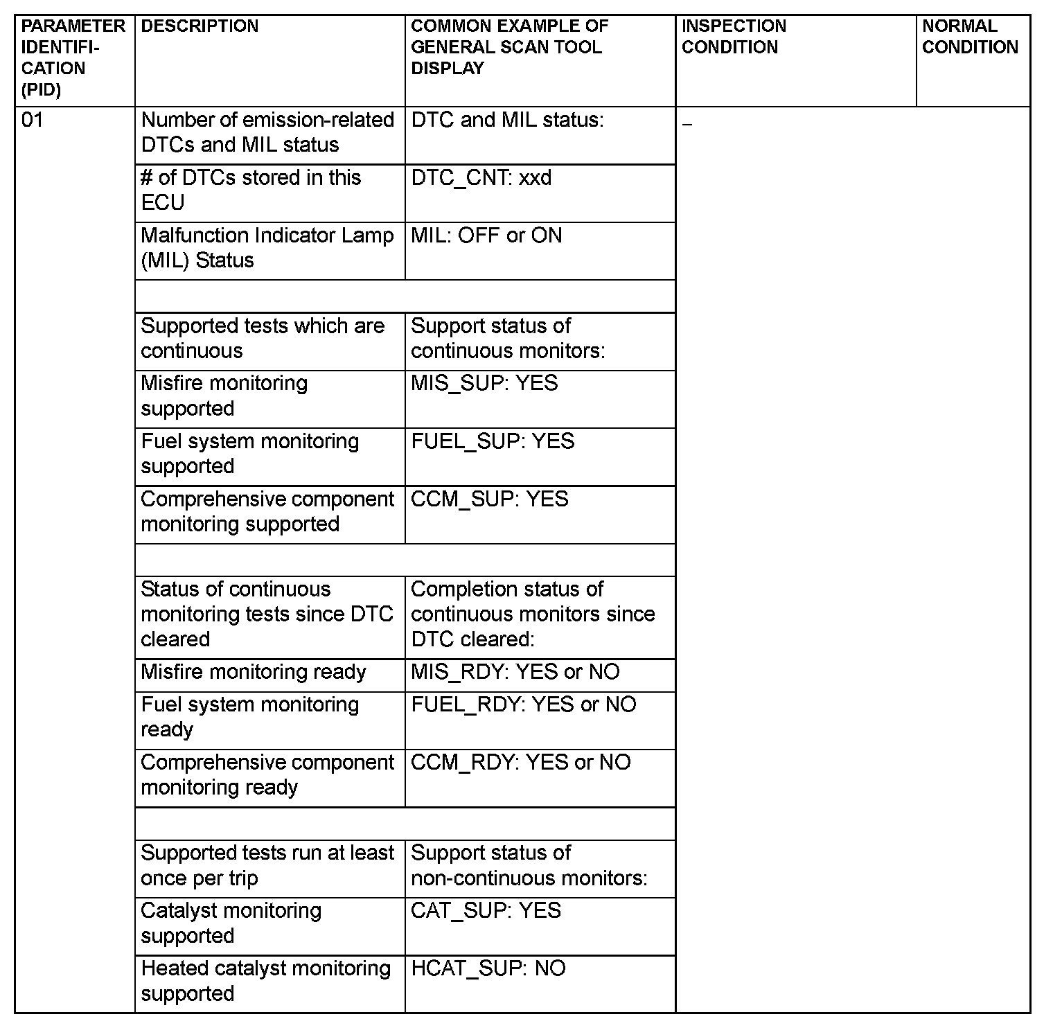 GENERAL SCAN TOOL (GST) MODE 01 REFERENCE TABLE