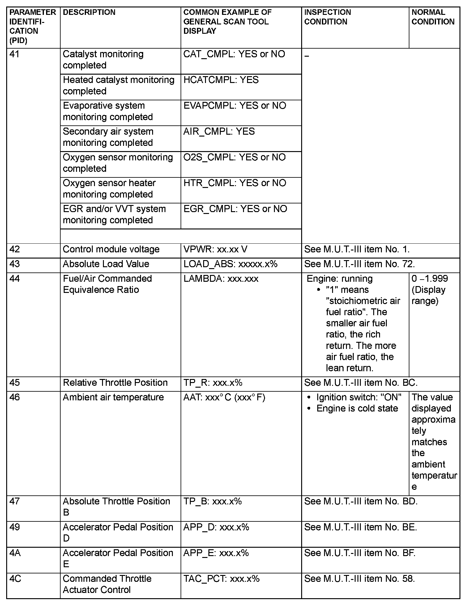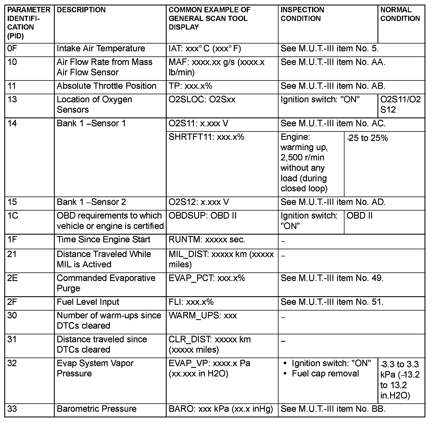 NOTE: GST MODE 01 can be accessed through the use of a general scan tool.